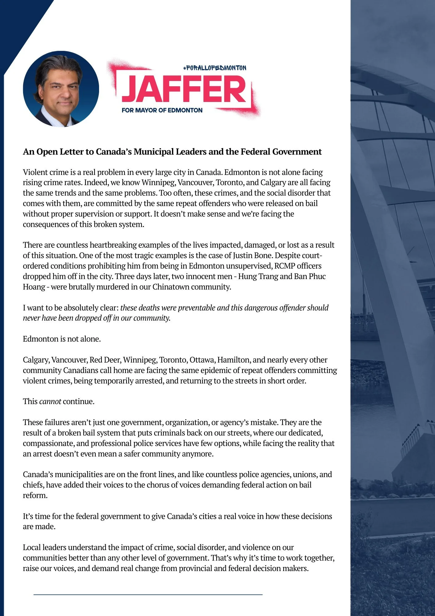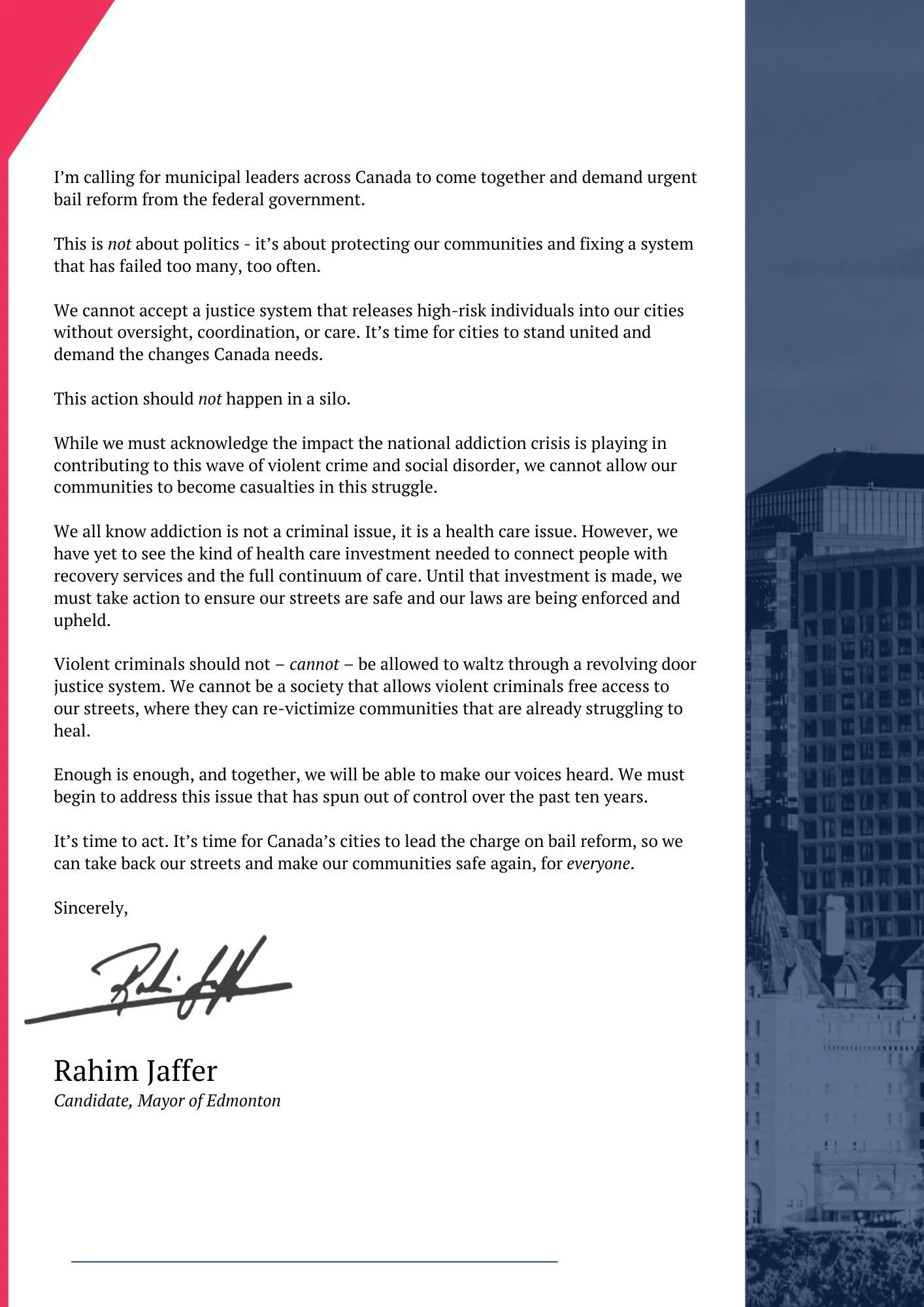 If elected on Oct. 20, I will convene a coalition of likeminded municipalities to call for real bail reform.
